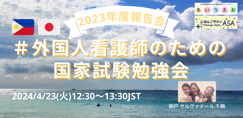 メンバーとしてお世話になっている、日本語あいうえおさんの主催で、#外国人看護師のための国家試験勉強会 2023年度の報告会を開催することになりました。